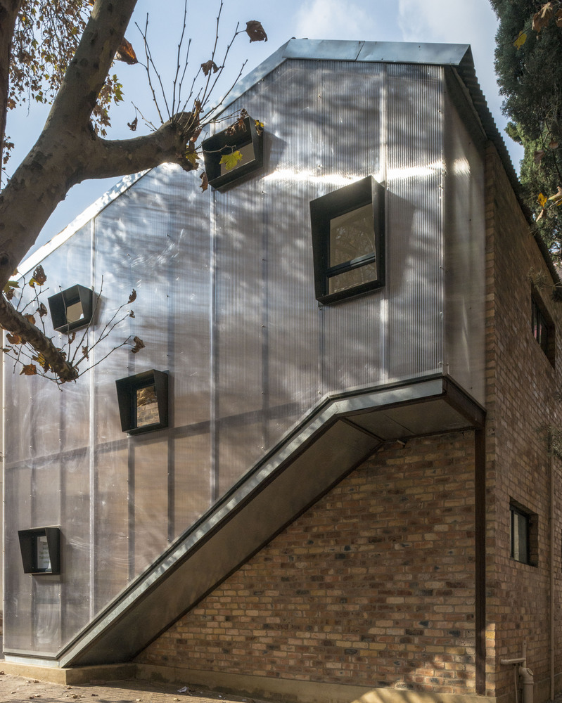Drivelines Studios 2017 год. жилой комплекс, который состоит из старых морских грузовых контейнеров. Установленные друг друга, они образуют два семиэтажных дома, каждый из которых по площади составляет 7000 м². Размеры квартир варьируются от 28 до 56 м². Квартиры соединяют мосты-коридоры под открытым небом, которые жильцы используют как общий балкон.