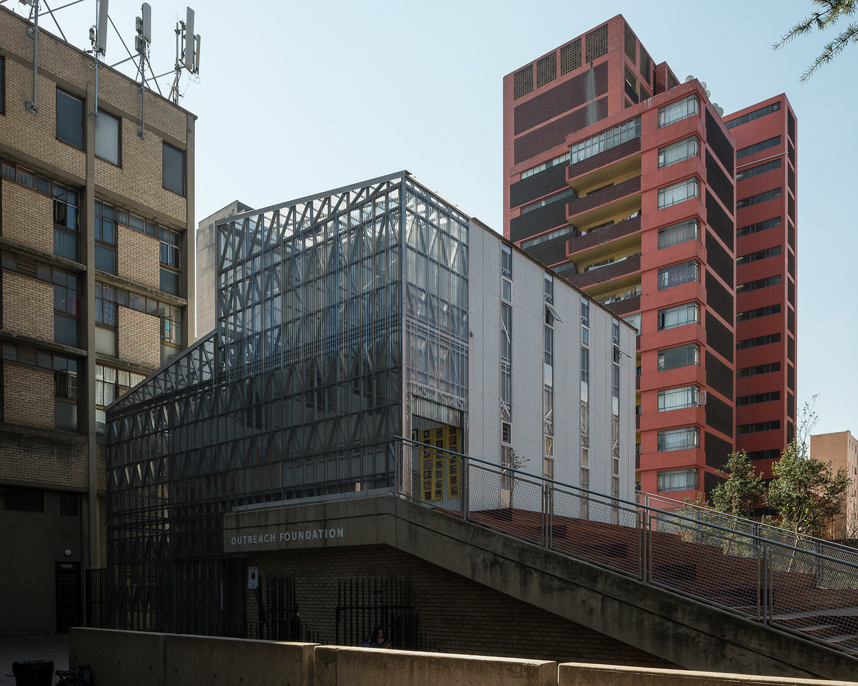 Alexandra Interpretation Centre. Арх Peter Rich Architects. здание смешанного назначения, спроектированное как мост, перекинутый через улицы . В здании выставочные пространства, рассказывающие об истории этого места, джазовый архив, посвящённый богатой музыкальной истории, зародившейся здесь, библиотека, учебные помещения, магазины и рестораны. Здание также образует две городские площади, для мероприятий, таких как кинопоказы, так и для неформальной уличной жизни.